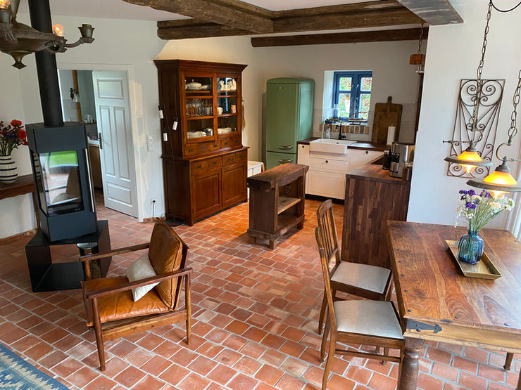 - antiker Terrakotta-Steinboden & ursprüngliche Holzdielenböden